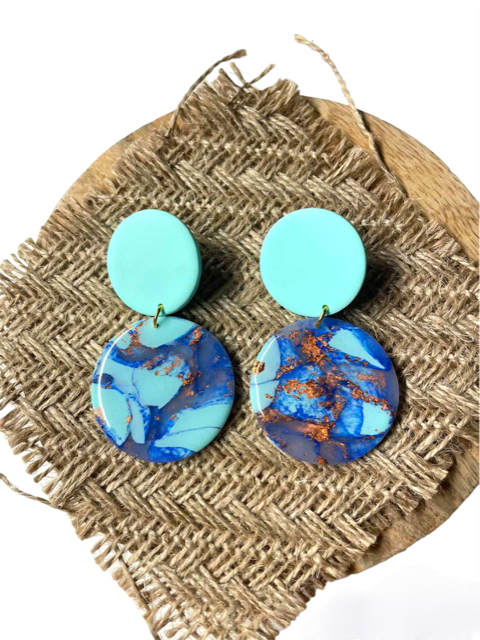 - handgemaakte oorbellen waarbij klei en hars zijn gebruikt
